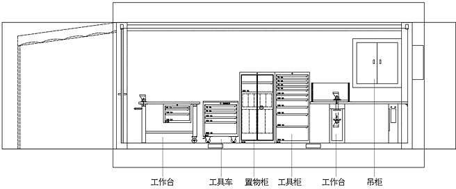 工装配置:可根据需要配置工作台、工具柜、吊柜等大部分工位器具产品。