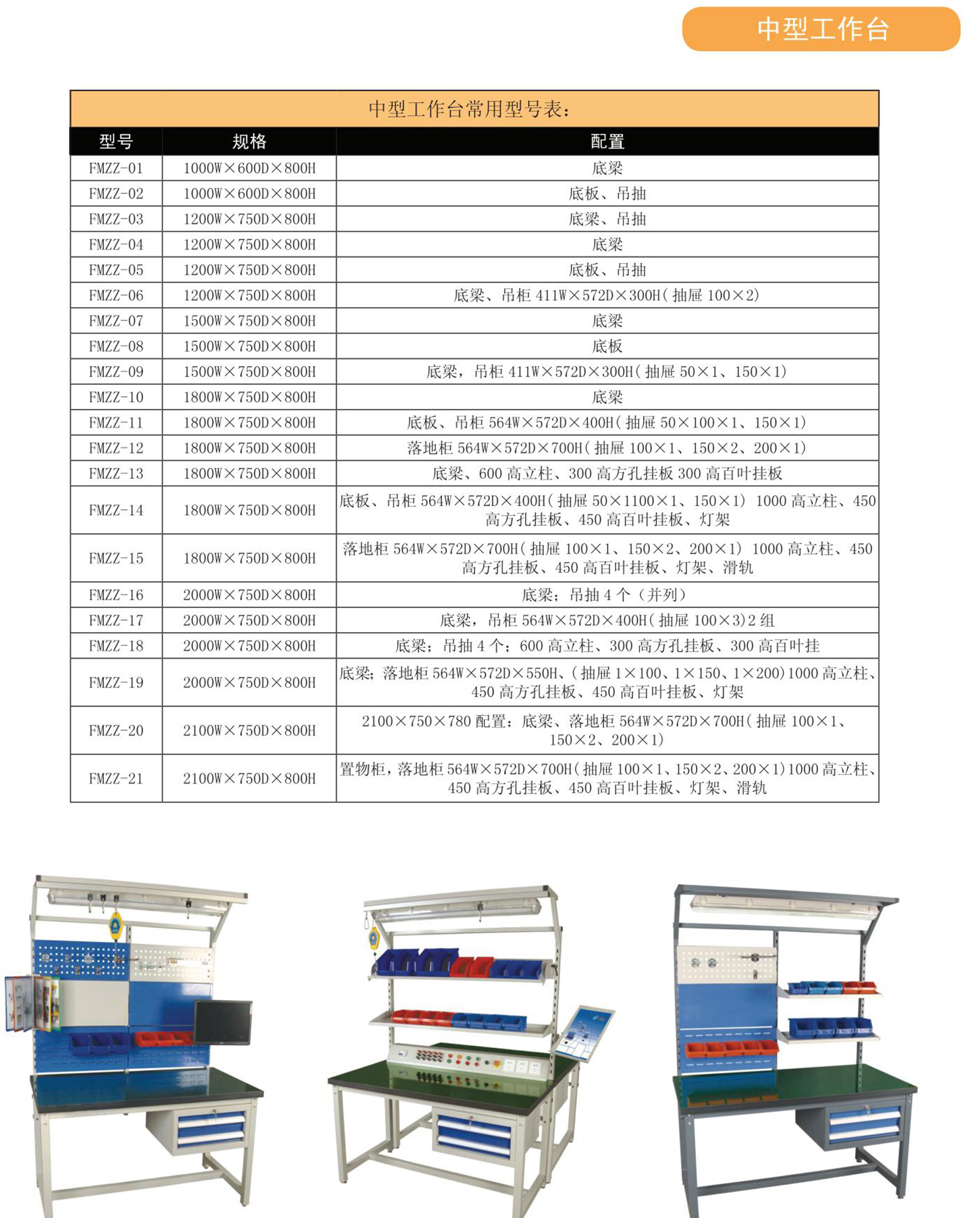 按承重不同可分为轻型、中型、重型工作桌;
