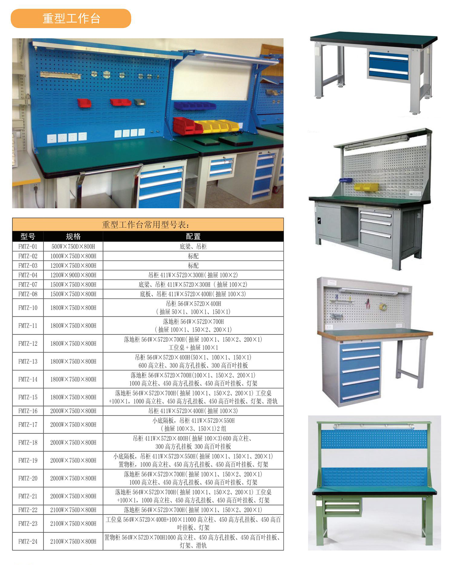 重型工作桌可选装台虎钳等工具设备。