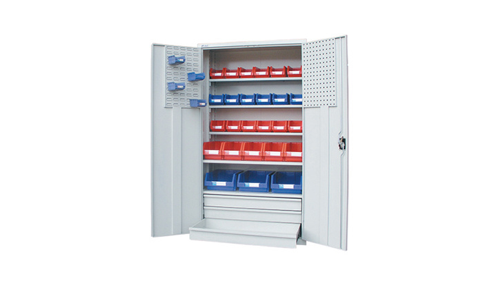 内置2块400高背方孔挂板,1层等深搁板,2×125EA或VA抽屉,1层等深搁板,可放8个BX-04