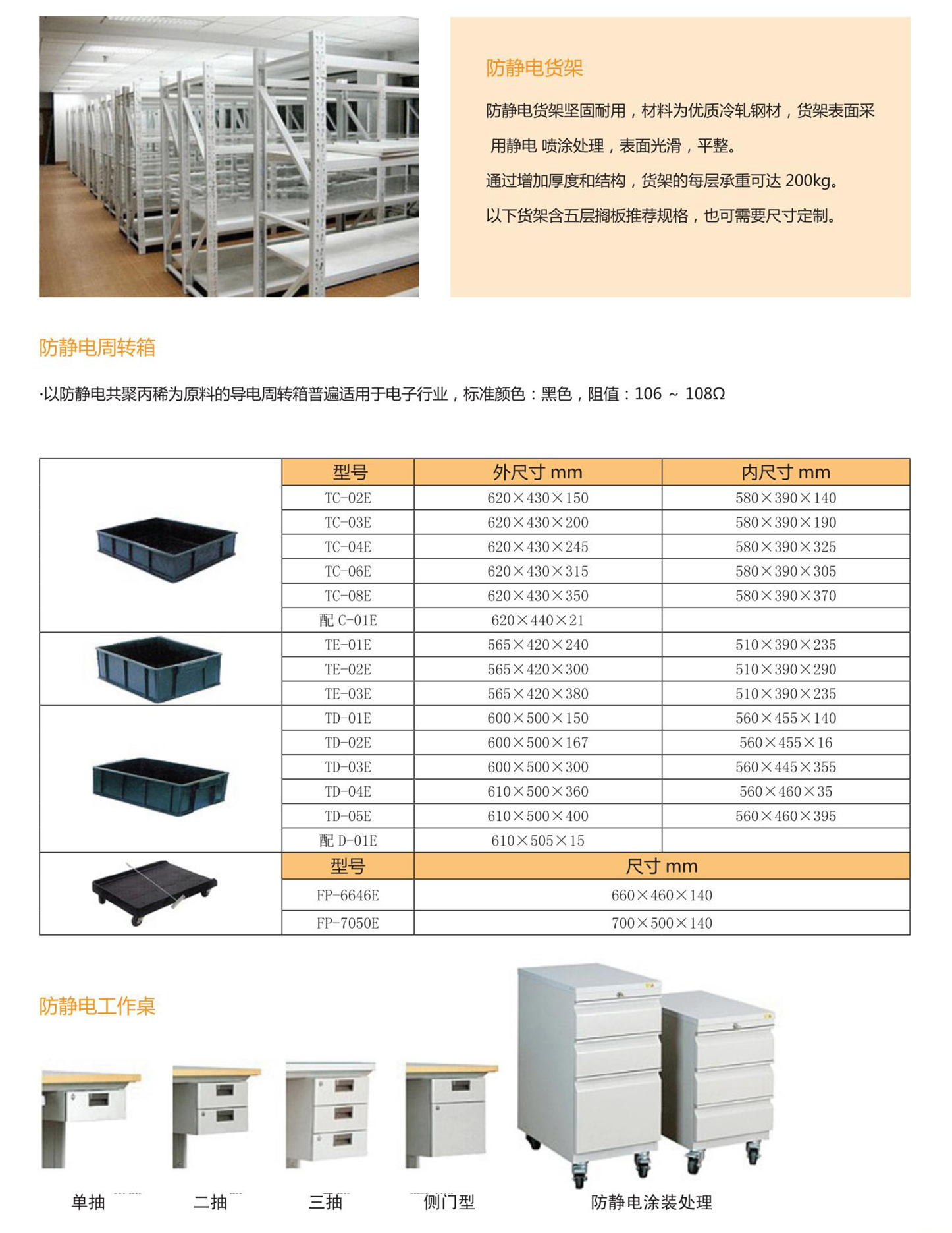 防静电货架坚固耐用,材料为优质冷轧钢材,货架表面采用静电 喷涂处理,表面光滑,平整。