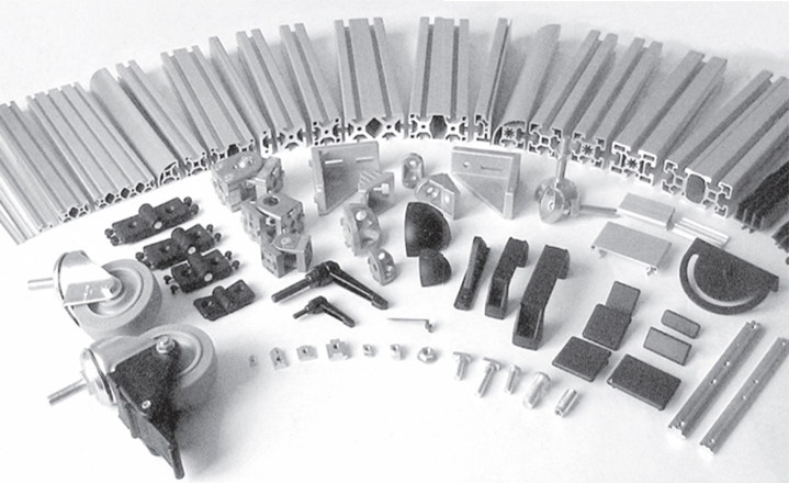 利用优质挤压铝合金型材与各种紧固件、连接件和多种多样的附件组合在一起,形成独具个性的产品,用户可根据自己的需求自行设计、安装、具有外形美观、表面洁净、组合方便快捷,同工作环境紧密配合等优点。选用防静电材料可适用于各种防静电环境。
